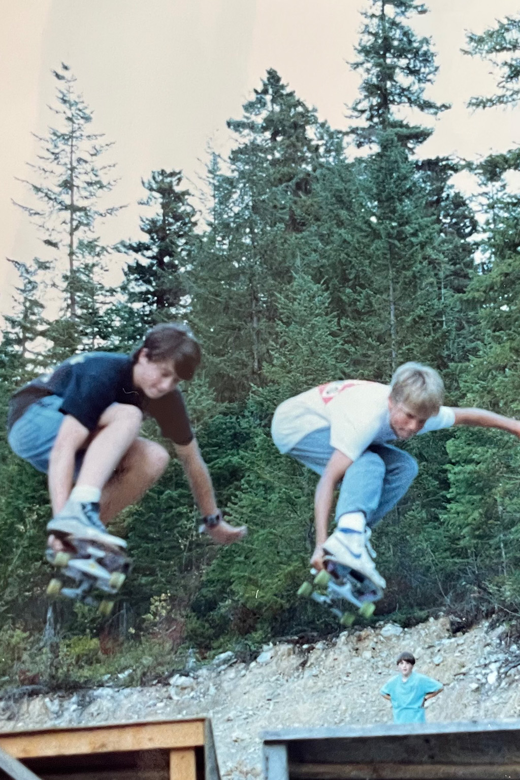 We are a collective of old schoolers (like some of us kind of knew Myrtle Philip) who grew up in Whistler and Pemberton or have deep ties to the area. Surprisingly, it was not that long ago when there were not enough kids for sports teams. So in the winter we skied (snowboarding wasn’t really a thing yet) and in the summer we skateboarded.